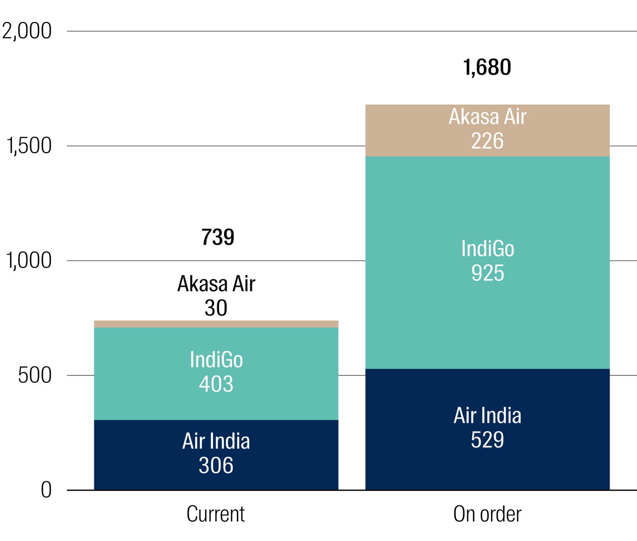 Indian airlines are ready to meet this demand as well. As highlighted below, the big three local airlines have a combined 1,680 new planes on order.4 This compares to a combined current fleet of 739 aircraft. A phenomenal increase in capacity even once you assume retirements of some of the existing fleet. As a result, once the aircraft manufacturer issues previously noted are resolved, this is the region where we expect to see the most significant further acceleration in traffic growth.