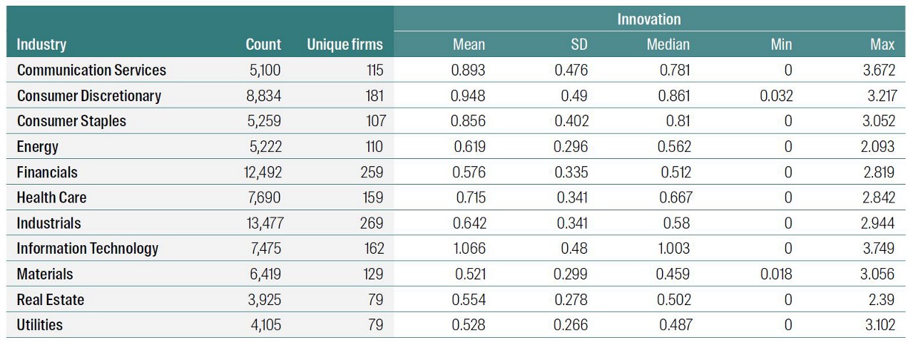 Figure 2: Distribution of Innovation words by industry
