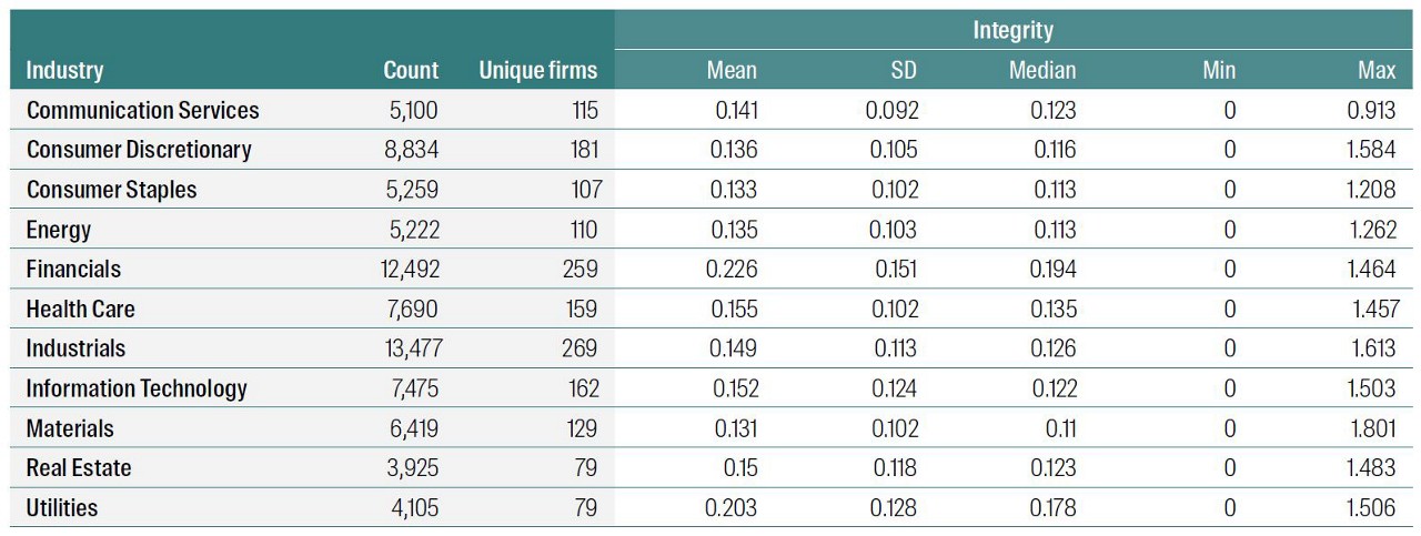 Figure 3: Distribution of Integrity words by industry