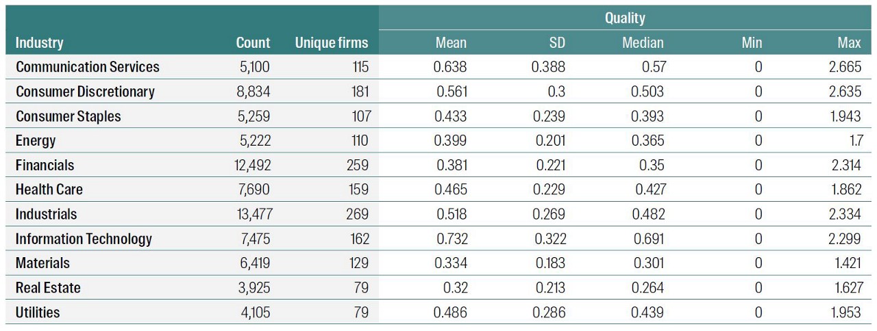Figure 4: Distribution of Quality words by industry