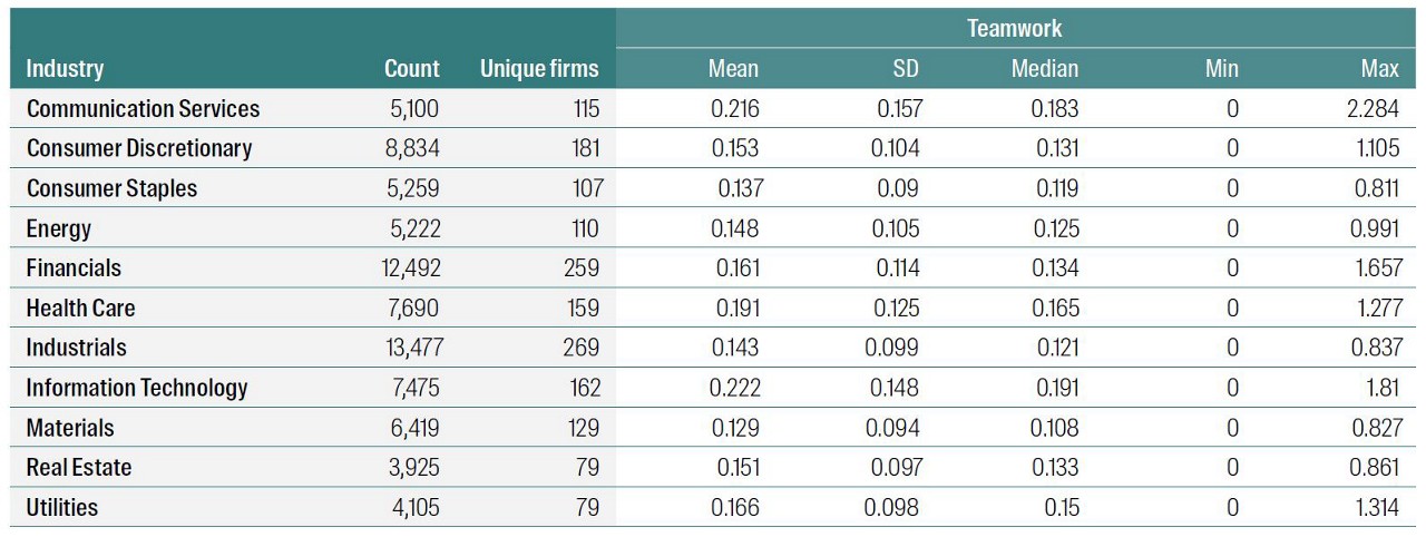Figure 6: Distribution of Teamwork words by industry