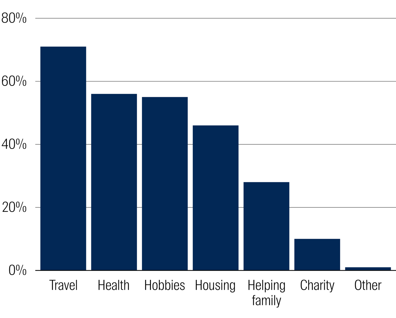 The SKI phenomenon has been cited by airlines as a positive source of growth, particularly when it comes to the strong performance they have seen in their premium (premium economy/ business/first class) cabins. A recent survey of US retirees found that 63% of Americans nearing retirement saw travel as an important retirement goal. Another survey found that just 6% of retirees felt leaving a financial inheritance was more important than creating travel memories. The same survey found 68% of retirees don’t worry about spending their children’s inheritance when travelling.3